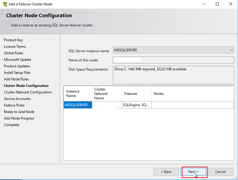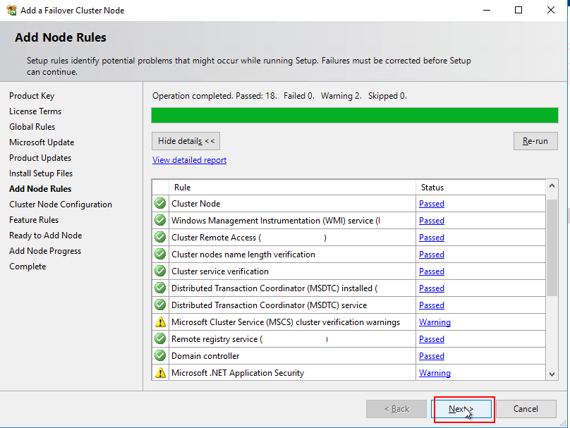 7) 최초 설치된 노드(Active)노드 정보를 확인하고, [Next]를 클릭합니다.