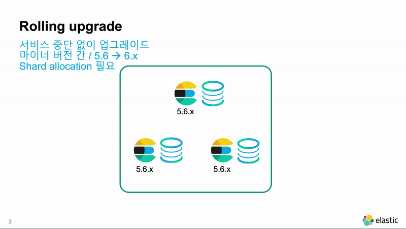 롤링 업그레이드란 Elasticsearch 클러스터에서 한 노드씩 업그레이드하는 것으로, 서비스 중단없이 업그레이드를 할 수 있습니다.