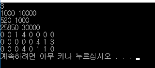 둘째 줄부터 T + 1번째 줄까지는 물건의 값과 받은 금액이 주어진다.