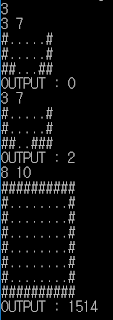 력의 첫 줄에는 테스트 케이스의 수 C (C <= 30) 가 주어집니다. 각 테스트 케이스의 첫 줄에는 2개의 정수 H, W (1 <= H,W <= 20) 가 주어집니다. 다음 H 줄에 각 W 글자로 게임판의 모양이 주어집니다. # 은 검은 칸, . 는 흰 칸을 나타냅니다. 입력에 주어지는 게임판에 있는 흰 칸의 수는 50 을 넘지 않습니다.