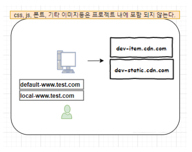 - 예) local-www.test.com 자바 톰캣으로 접속하면 정적 리소스는 dev-static.cdn.com 에서 찾음
