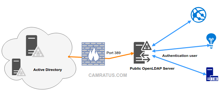 아래와 같이 구성하면 Active Directory 서버를 보호하면서 OpenLDAP을 이용하요 인증을 수행할 수 있다.