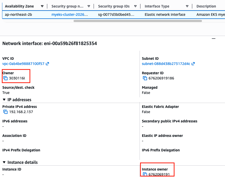 ENI owned ENI 확인 - 소유주와 인스턴스 소유주가 다른 것 확인